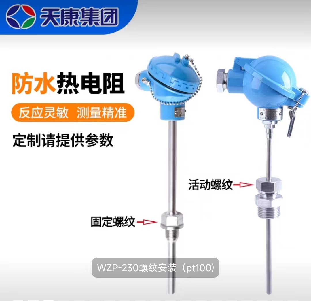 WZPK-230天康铠装热电阻是利用物质在温度变化时,其电阻也随着发生变化的特征来测量温度的。当阻值变化时,工作仪表便显示出阻值所对应的温度值。铠装热电阻是一种温度传感器,它比装配式热电阻直径小,易弯曲,抗震性好,适宜安装在装配式热电阻无法安装的场合,WZPK系列铠装热电阻采用引进热电阻测温元件,因此,具有精确、灵敏、热响应时间快、质量稳定、使用寿命长等优点。
