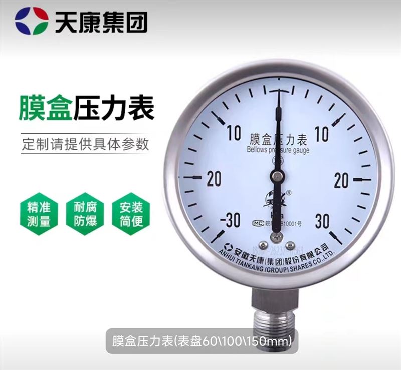 供应膜盒压力表适用于测量对铜合金不起腐蚀作用,无爆炸危险的微压和负压。广泛用于锅炉通风和气体管道等设备上,膜盒压力表可以就地安装并现场指示。膜盒压力表采用膜盒作为测量微小压力的敏感元件。测量对铜合金不起腐蚀作用、无爆炸危险气体的微压和负压,广泛应用于锅炉通风、气体管道、燃烧装置等及其它类似设备上。